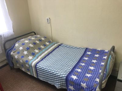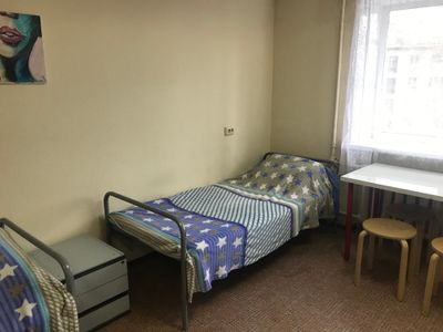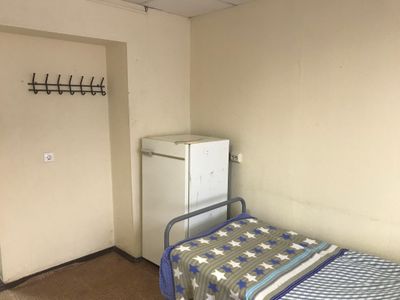 Комната прокурена, проветривание на время помогает. Матрац на кровати мягковат и чувствуются пружины. В первый день не было мыла в санузле, потом появилось. На стенах в комнате есть пятна, но после каждого жильца не переклеишь. Если кому важно, то пятый этаж без лифта.